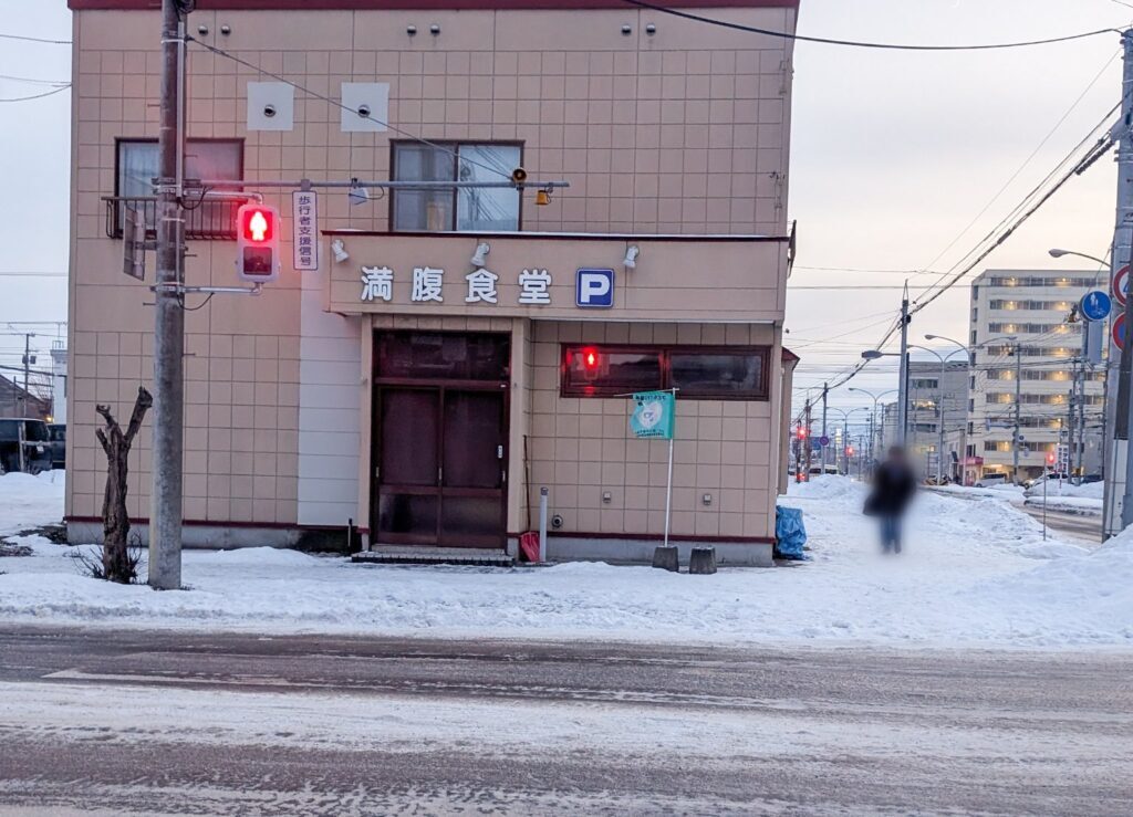 場所は旭川市末広2条4丁目です。道路を挟んで向かいには「旭川練成会 北本校」があり、向かって道路を挟んで左隣は「ローソン 旭川末広3条店」となります。