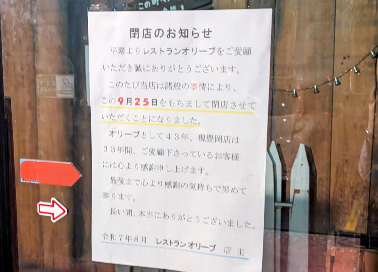 旭川の老舗レストラン「OLIVE 豊岡店」が、2025年9月25日をもって閉店となりました。閉店の情報が旭川中に駆け巡り、最後にもう一度、親しんできた味を堪能したいと多くの人が駆けつけ、行列にもなっていましたね。