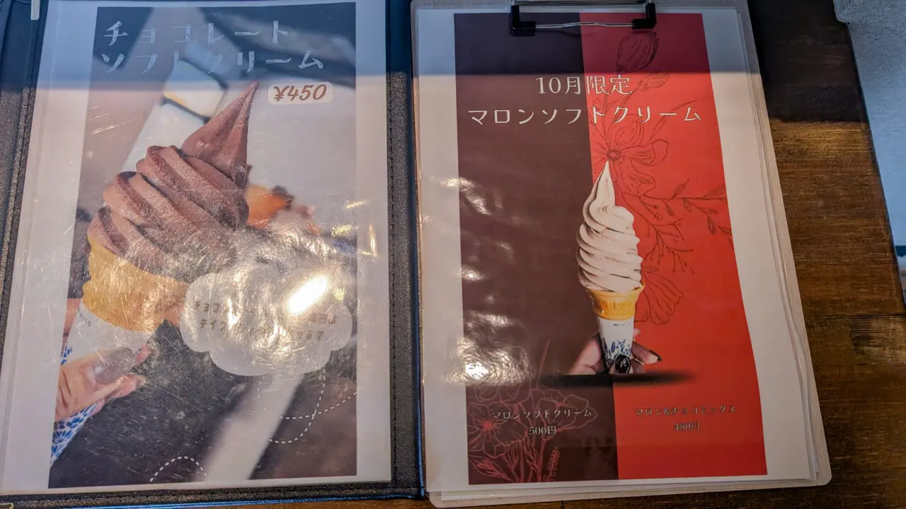 期間限定のソフトクリームの提供もはじめ、2025年10月は「マロンソフトクリーム」が味わえます。チョコとマロンのミックスも可能。さっそく味わってみると、やわらかくなめらかなソフトクリームでした。チョコのコクと甘さが口の中で広がり、チョコの味を消すことなくしっかりとマロンも感じられます。マロンソフトクリームは500円(税込)、チョコとマロンのソフトミックスは480円(税込)、チョコソフトクリームは450円(税込)で提供しています。