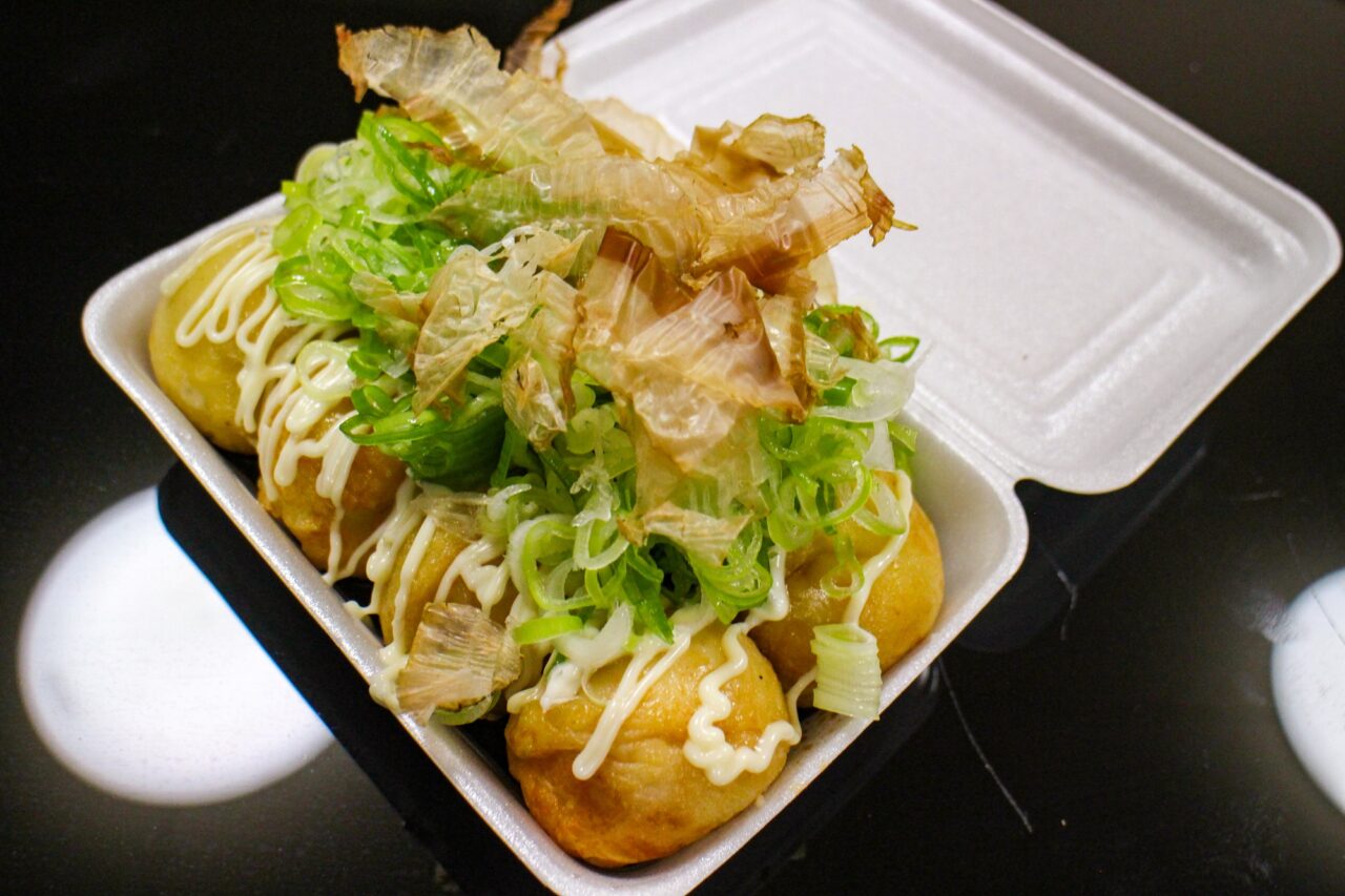 肌寒くなってきてたこやきの熱さが恋しくなってきませんか? たこからっとの特徴は明太子もネギも「これでもか!」というほど山ほどたこやきの上に乗せるところです。たこやき一個も大きいためボリューム満点。8個入りはいつも一人では食べきれません。