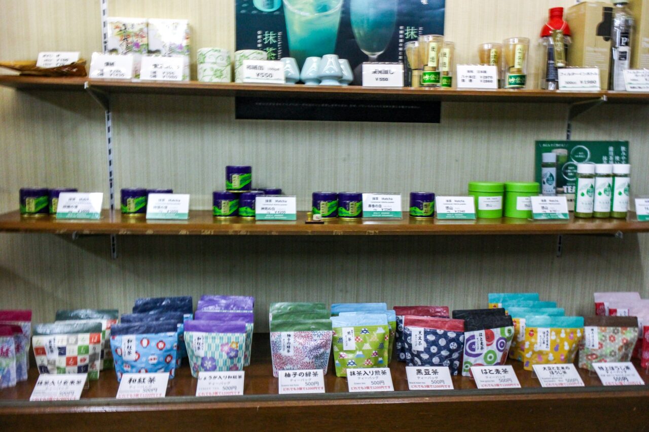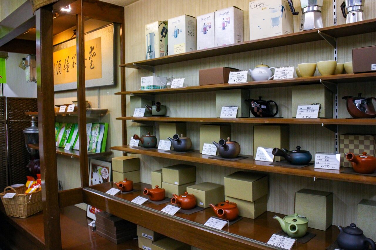 コーヒー豆も販売していますが「茶舗」とあるので、お店はお茶屋です。店内にいるとコーヒーの香りもするので、何屋なのか一瞬分からなくなりますね。急須でお茶を飲む人が少なくなっている中、ティーバッグや粉末茶も多く販売しています。