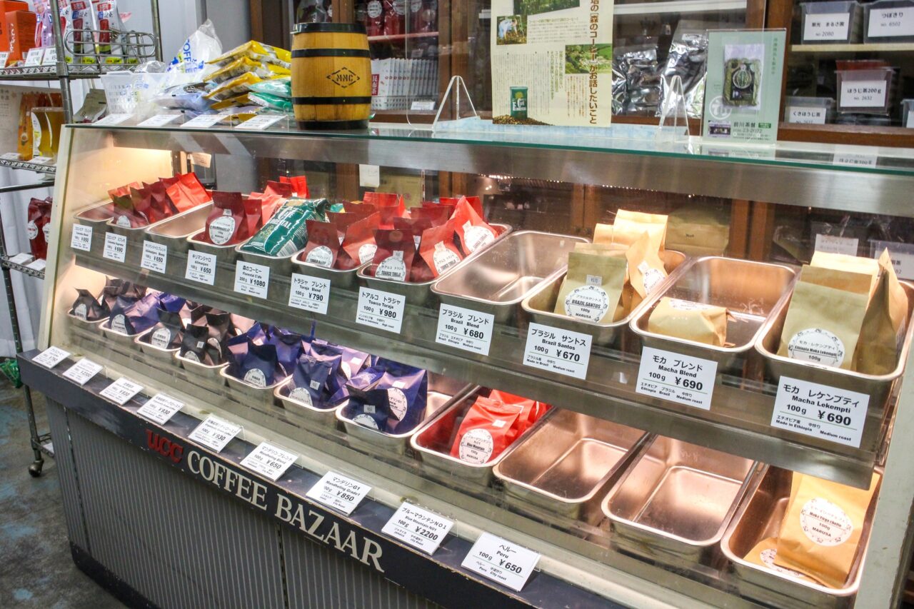 1909年(明治42年)創業の旭川市の中でも老舗中の老舗「前川茶舗」。その店内にはお茶の種類がとても多く、高級茶からお手頃価格のお茶に、茶道具までそろっています。そして、その中にはなぜかコーヒー豆も置いてあるんです。