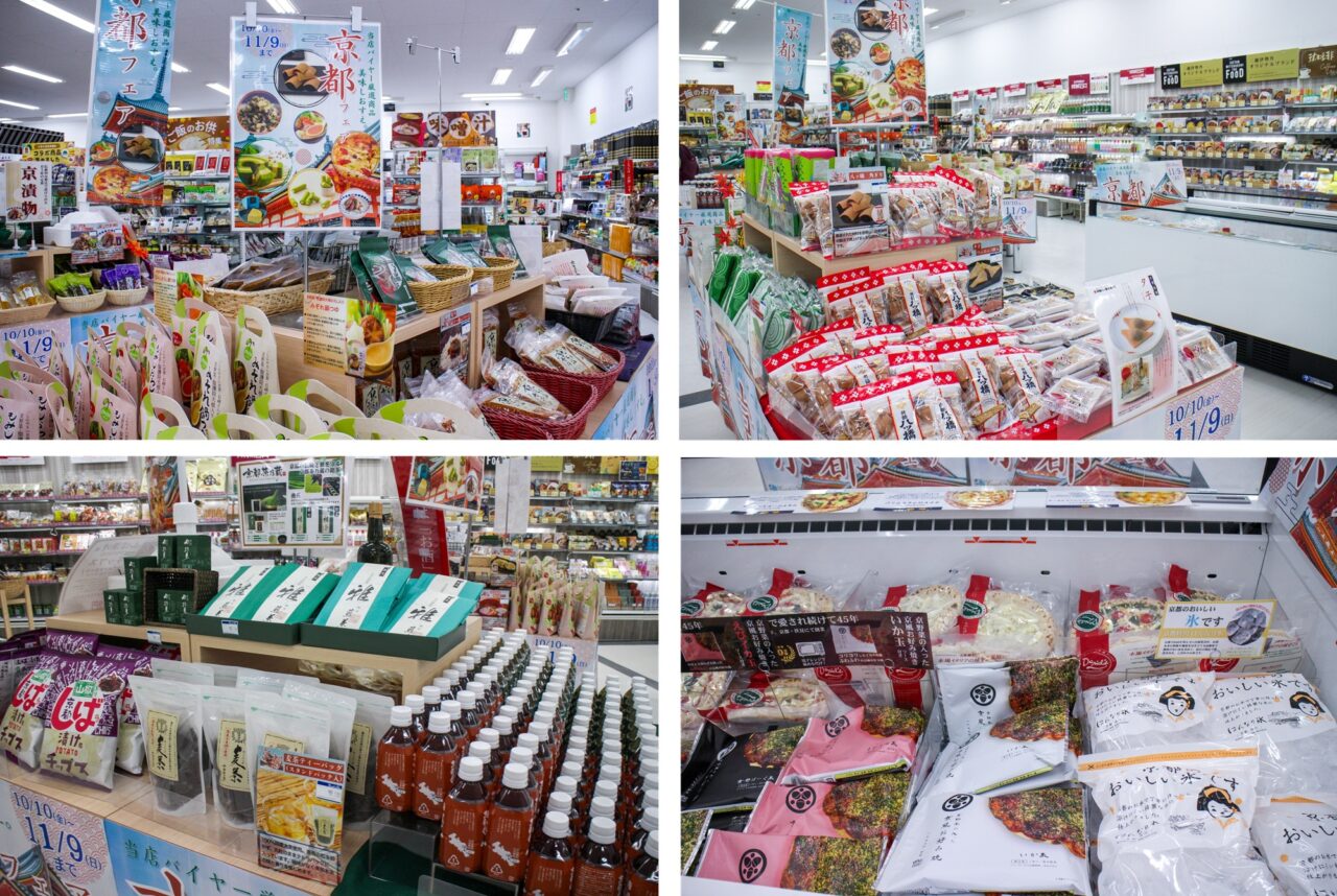 おなじみの八つ橋やお茶、お鍋の素に、お好み焼きなどの冷凍食品もあります。