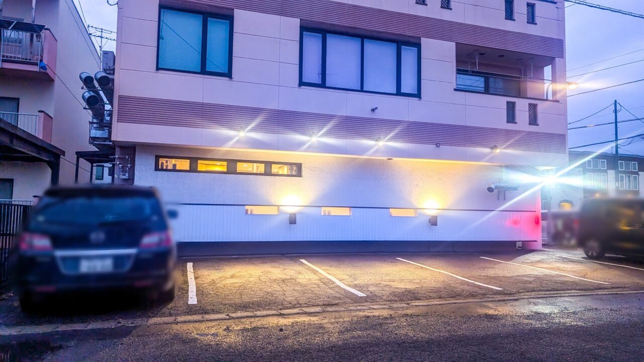 場所は旭川市南1条通23丁目で、啓明小学校のすぐ近くとなります。駐車場は店の側面と、駐車場の小道を挟んで左斜めに砂利となってる場があり、そこにも駐車可能で、合計12台ほど駐車可能です。
