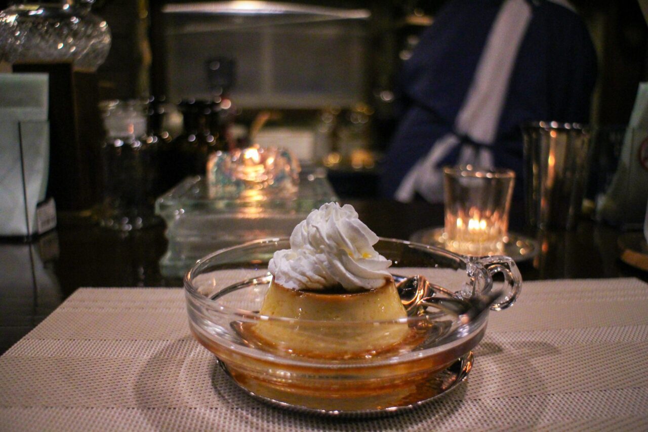ほど良い甘さとなめらかさ。食感もやさしく昔ながらのプリンといった印象です。柔らかすぎず、固すぎずで、上に乗っているホイップとともにひと時のあまい至福の時間をお楽しみください。