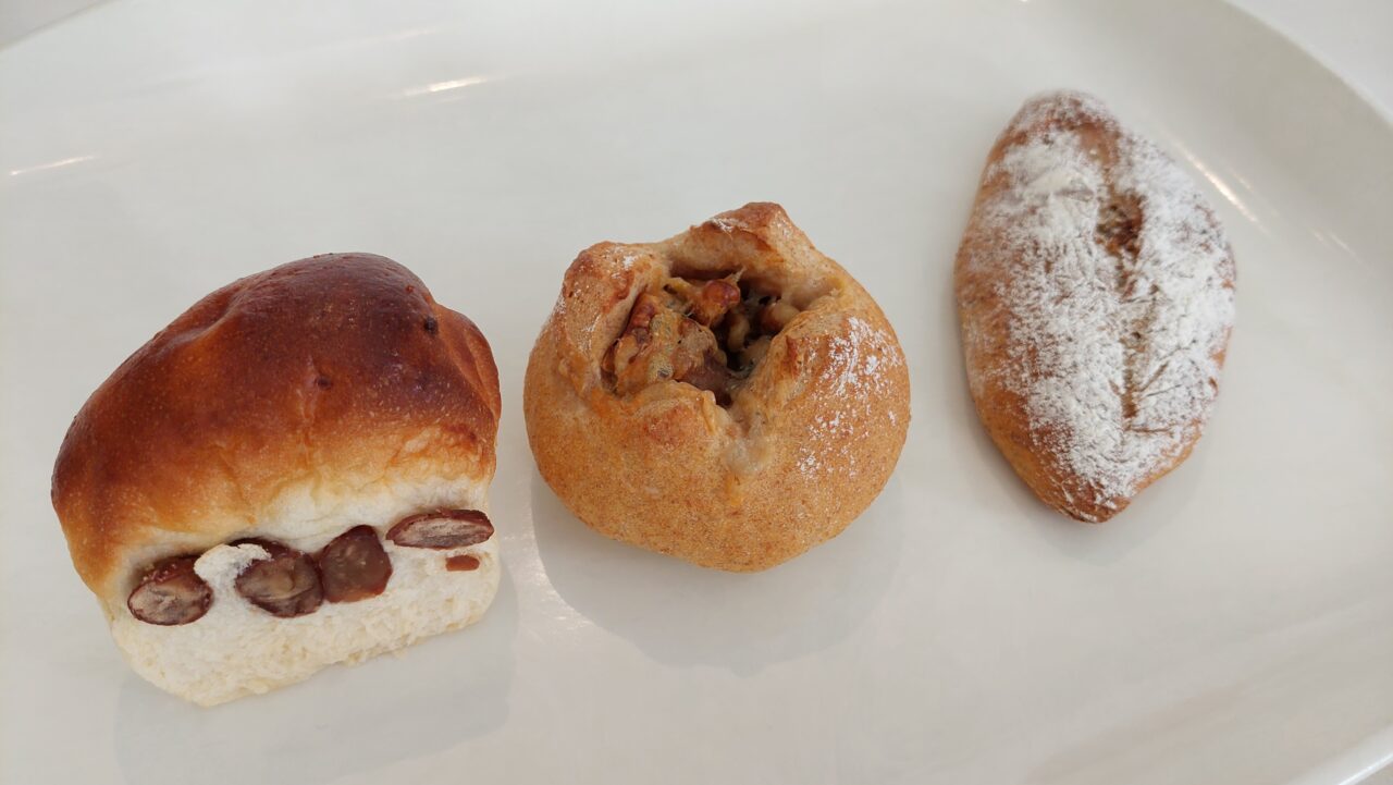 秋の新作パンも登場しています。「金時豆のミニミニ食パン」は242円(税込)、「北海道産全粒粉50% 胡桃&ブルーチーズ」が396円(税込)、「北海道産ライ麦50% アールグレイ&イチジク」が341円(税込)となります。秋に合うパンなので、みなさんぜひ味わってみてください。