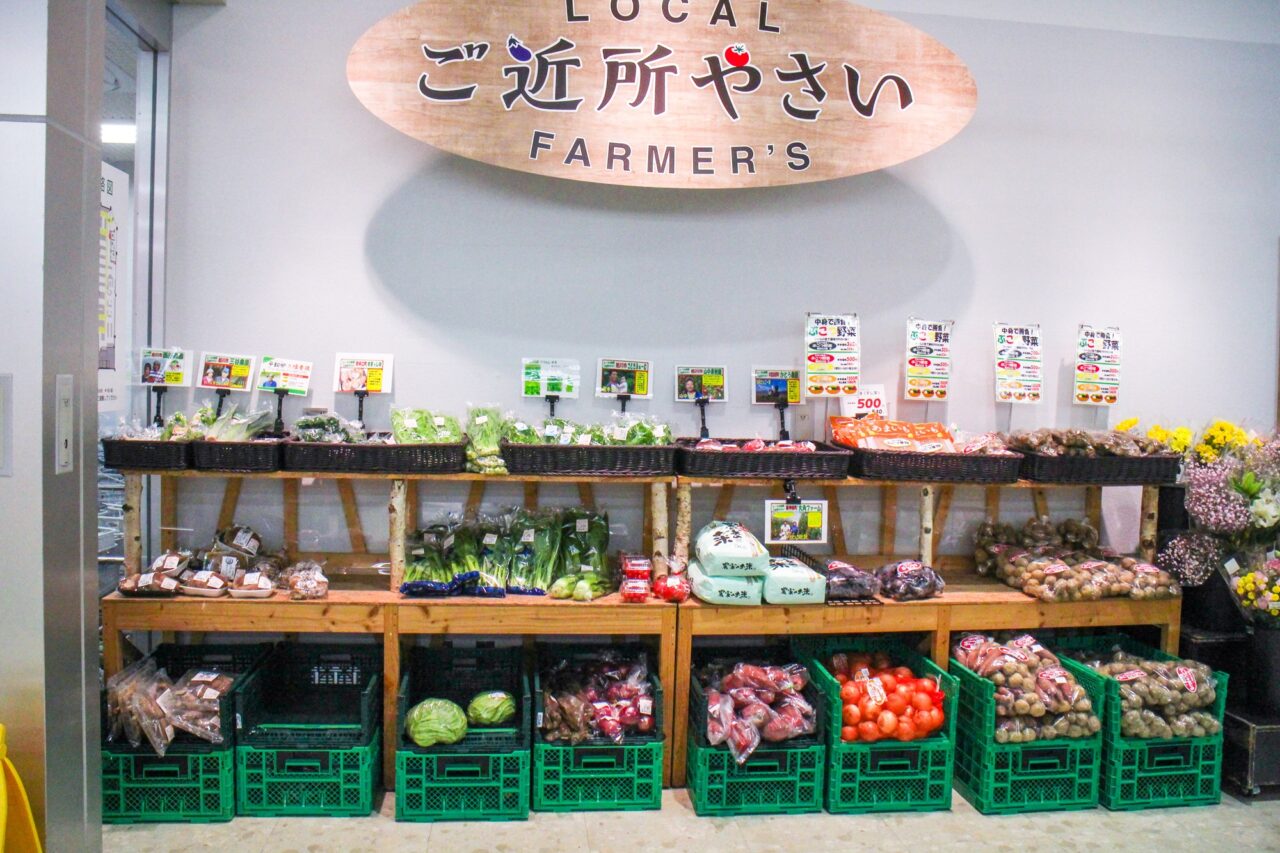 店長さんによると、いちばん人気は「ご近所やさい」コーナーだそうです。東神楽近郊の野菜が揃っていました。地元東神楽町の大角ファームや、中富良野町のかとう農園、旭川の三谷農園といった近郊の野菜や卵、お米は鮮度抜群だそうですよ。
