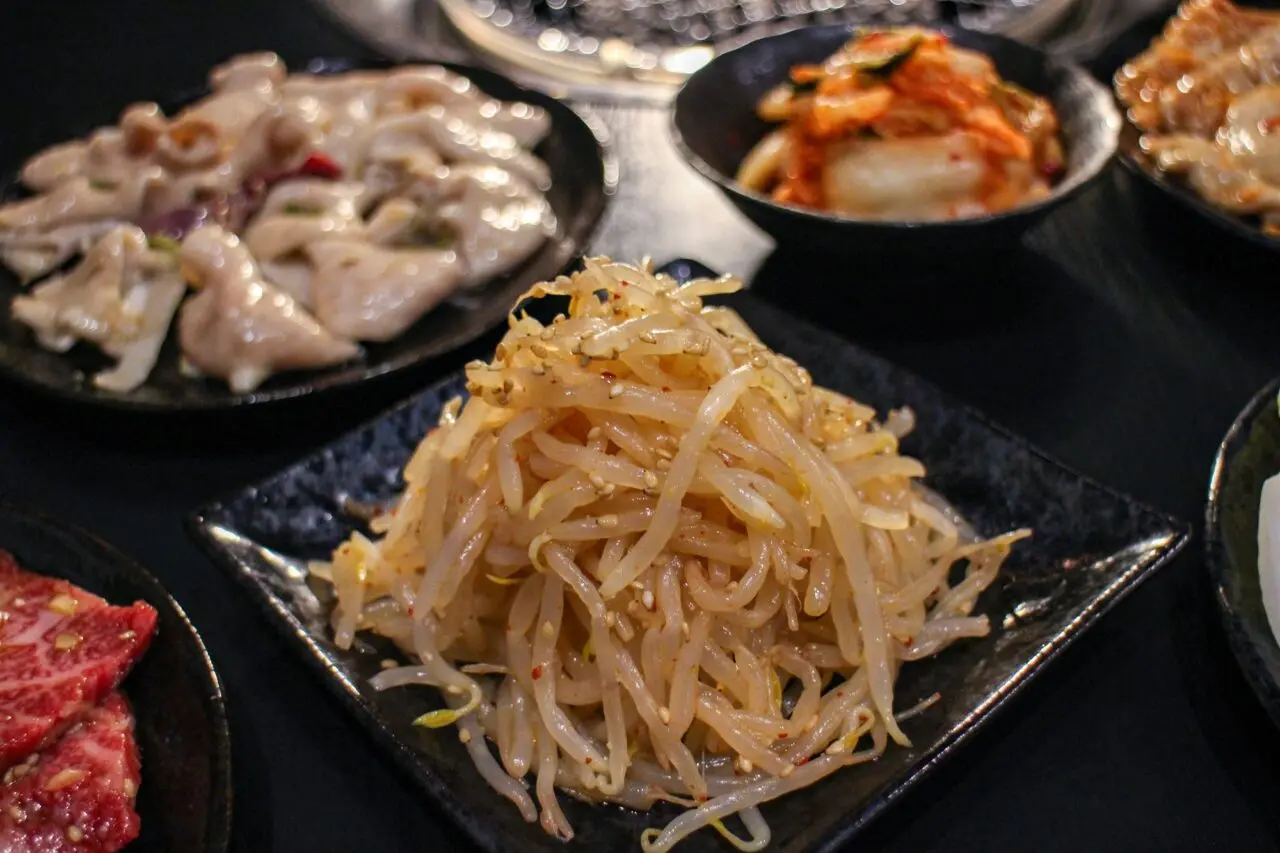 そのごはんに合う「もやしナムル」もボリュームたっぷり。もやしのシャキシャキ感とごまの風味に少しピリっとして味付けが、肉にもごはんにもよく合います。個人的には肉に数本添えてごはんと一緒に食べるのがいちばん合いました。箸休めにキムチはいかがですか。辛いながらも優しい味付けとなっていて、子供からお年寄りも好む味だと思います。