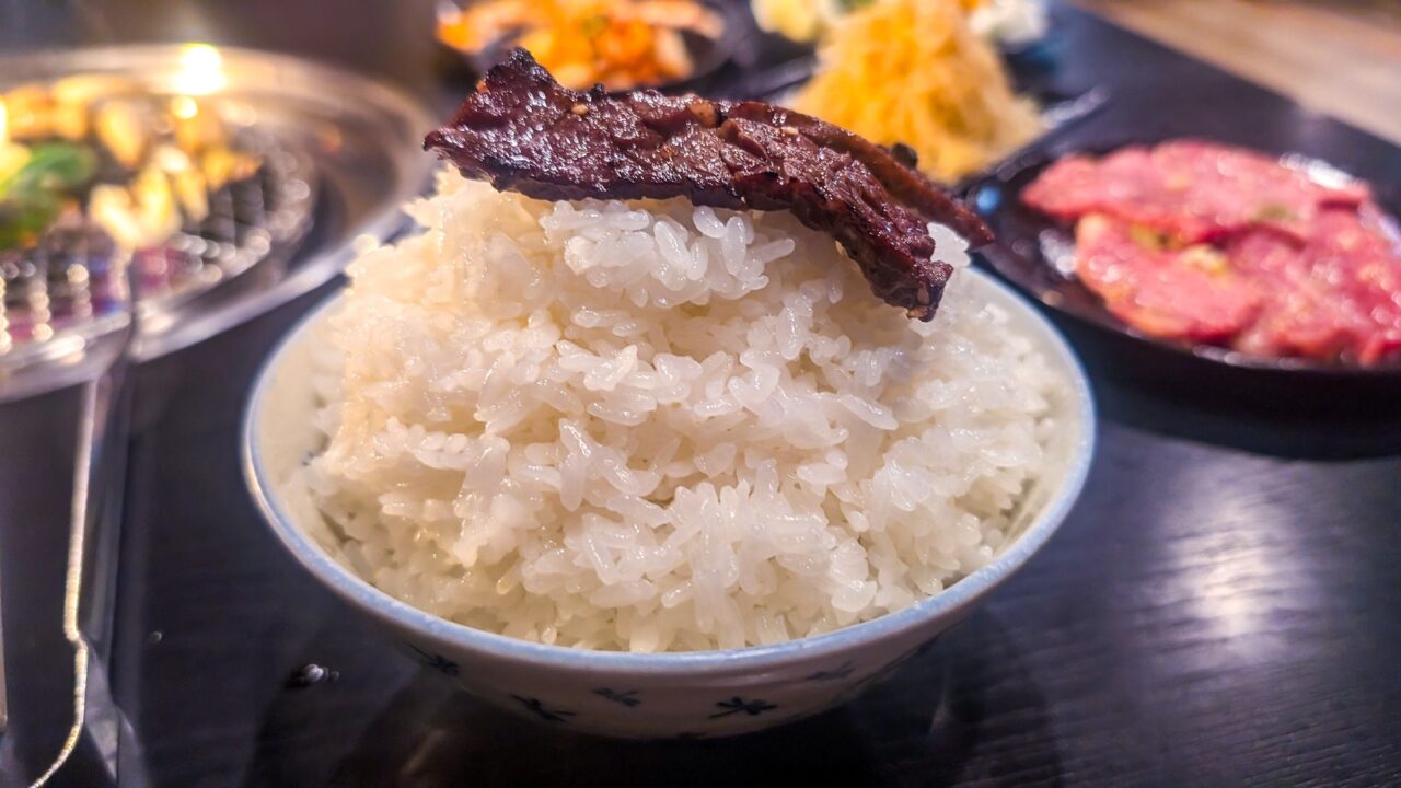 肉を食べていると、ごはんが欲しくなります。精香園のライスの大サイズはおよそ一合。まさに山盛りサイズです。かつては「特大サイズ」もあったそうで、いったいどんな量だったのでしょうね。近くには学校も多くあることから、学生さんは肉とごはんでお腹いっぱいになりそうです。