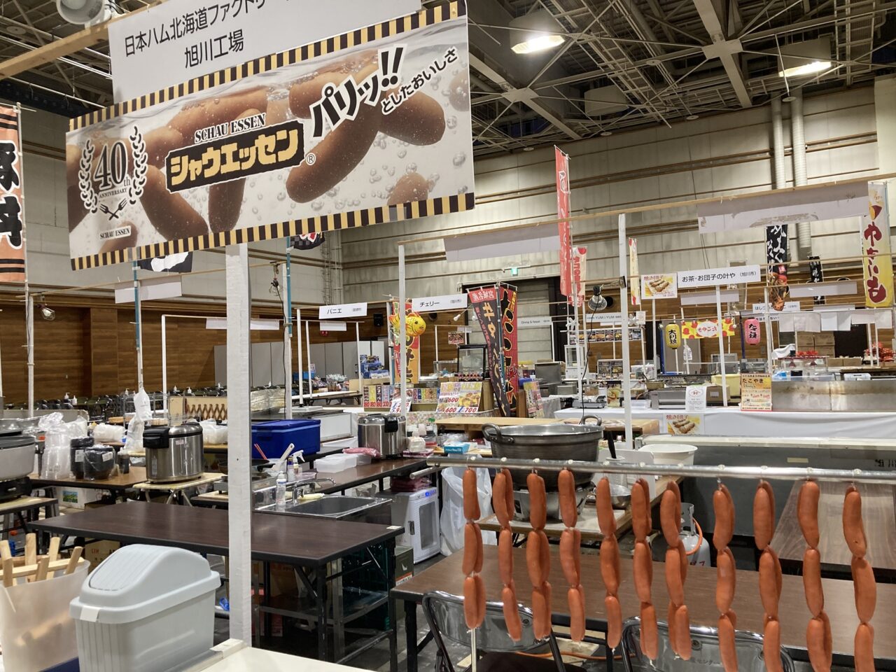 「日本ハム北海道ファクトリー㈱ 旭川工場」からはシャウエッセンが登場するようです。前日のセッティングにソーセージが連なっています。
