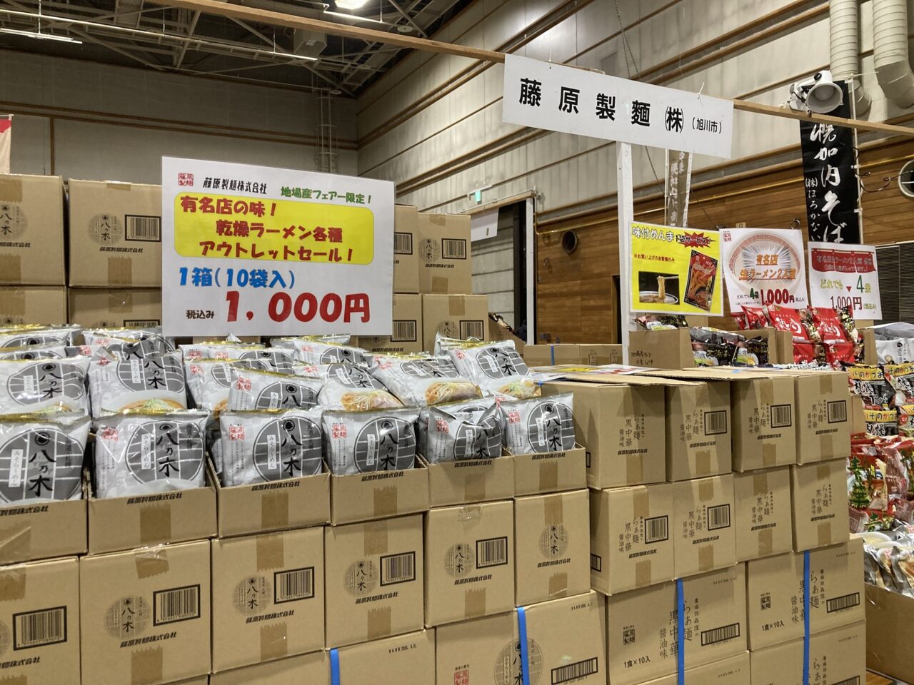 「藤原製麺」のブースには、乾燥ラーメン各種1箱(10袋入)が登場。1,000円(税込)とはとてもお買得です! かなりのお得なアウトレットセール。こちらも見逃せませんね。
