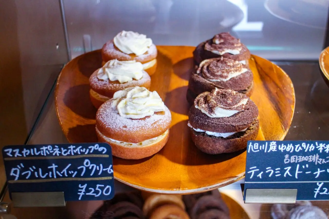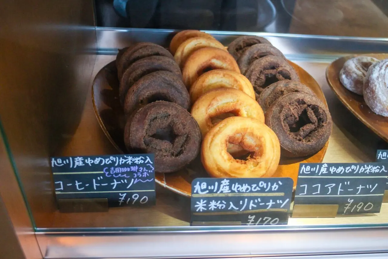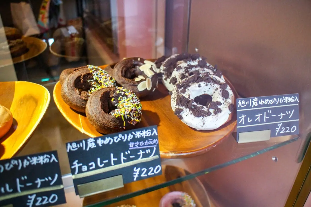 ほとんどのドーナツに旭川産ゆめぴりかの米粉を使用していることが特徴で、米粉は油の吸収率が低くヘルシーでもあることから身体にもやさしいドーナツです。季節に合ったドーナツも登場し常連さんたちに喜ばれているそうです。12月は「スイーツとポテトドーナツ」が限定で、2026年1月にはいちごが登場予定だそうです。