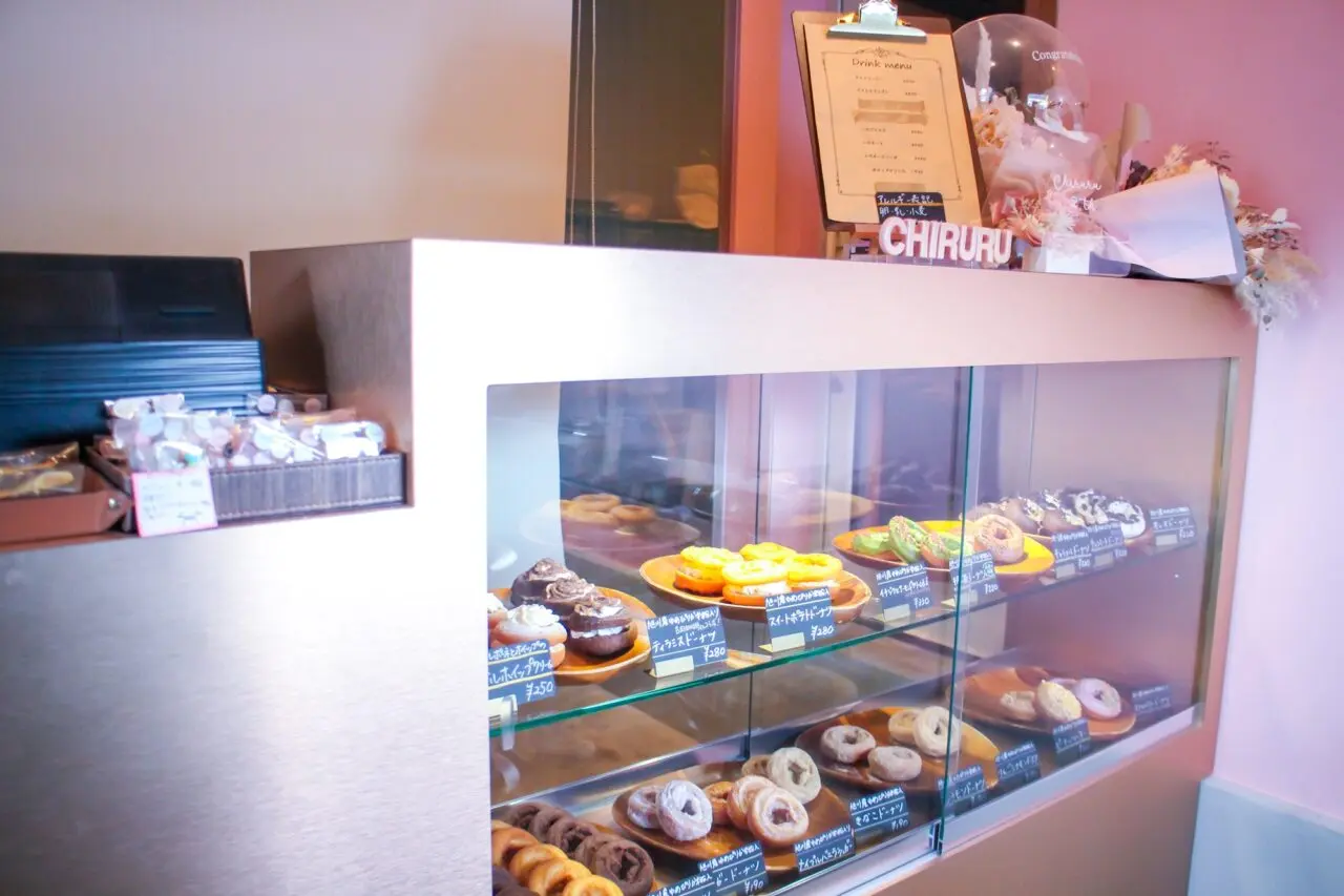 笑顔がとてもやさしく、ほんわかした雰囲気の店主さんがワンオペで運営しているかわいいお店「Donuts shop chiruru」。かわいいドーナツを選びながら、店主さんとのおしゃべりも、ぜひ楽しんでいただければと思います。