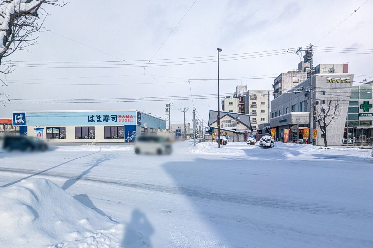 場所は旭町1条で、道道487号線沿いで国道40号からもすぐ近くにお店があります。道路を挟んでほぼ向かいに「コマヤ薬局」があり、「はま寿司 旭川旭町店」や「もち処 一久大福堂 旭川本店」もすぐ近くにあります。