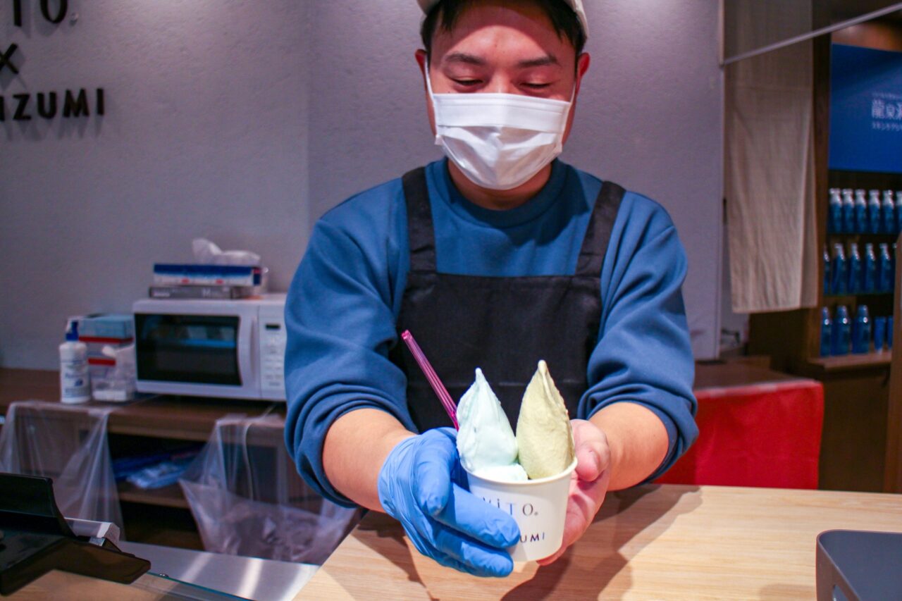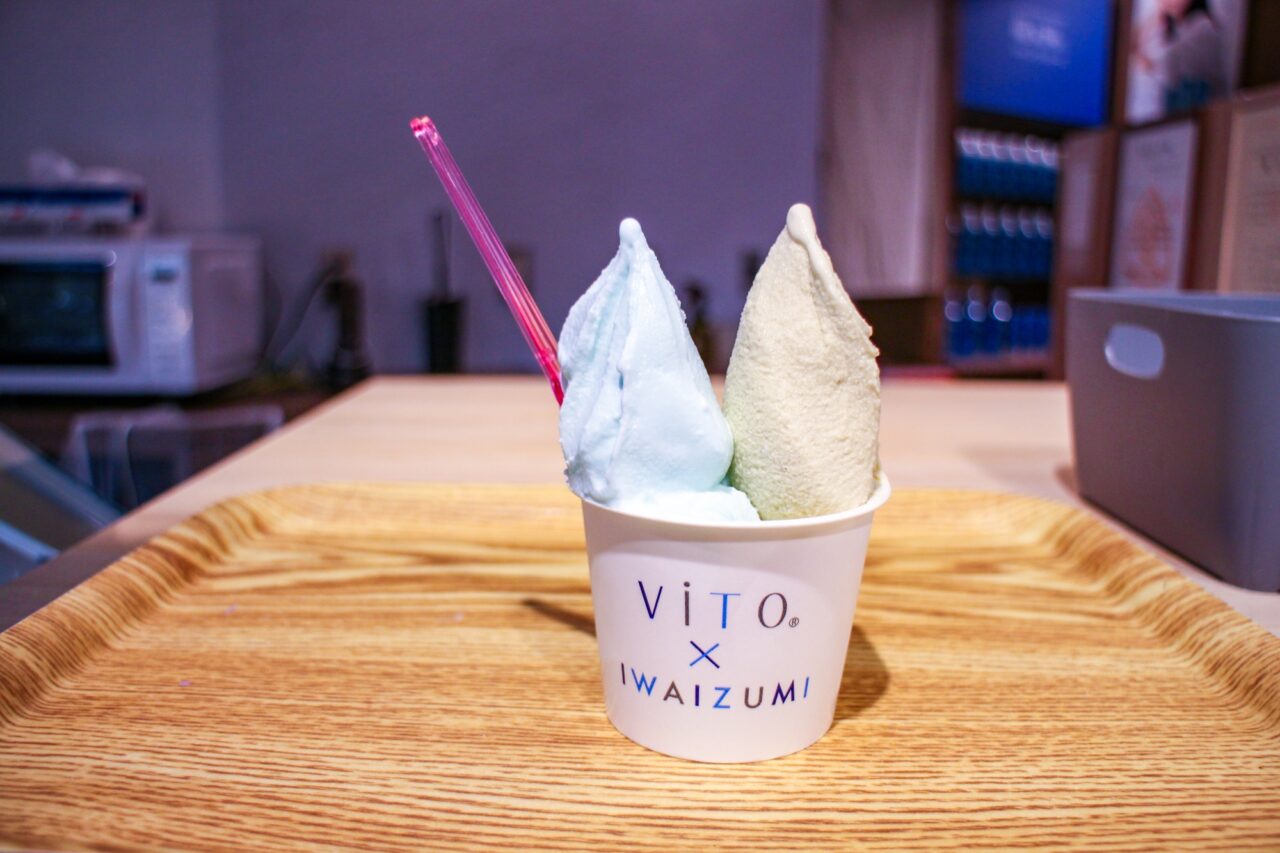「ViTO×IWAIZUMI」は、ジェラートブランド「ViTO」と、「岩泉」の素材が組み合わさった岩手県岩泉町の新鮮な生乳から作る本格イタリアンジェラートブランドです。ジェラートはすべてイタリアの伝統的な製法で作り上げられているという特徴があり、食感はもっちりとしつつも、岩泉町の生乳のなめらかさが絶妙なバランスとなっていて、くちどけもさわやかさが感じられます。