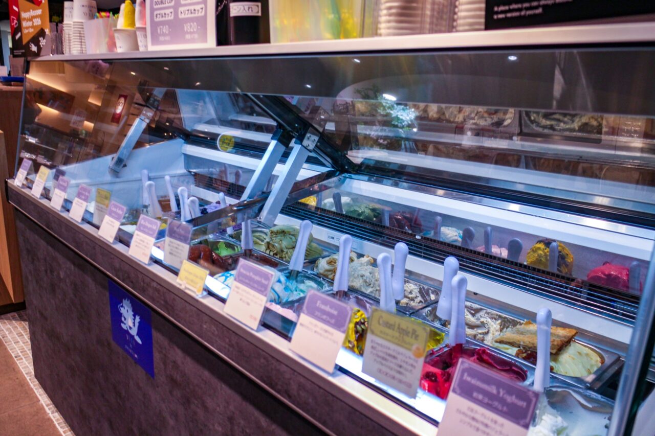 旭川店では14種類のフレーバーが展開しており、一か月ごとに一部のフレーバーが入れ替わります。お店の方の話では、2月上旬には「桃」のフレーバーが入荷予定だそうです。また、夏に向けて北海道らしいフレーバーを現在開発中とのことなので、どんなフレーバーが登場するかとても楽しみですね。