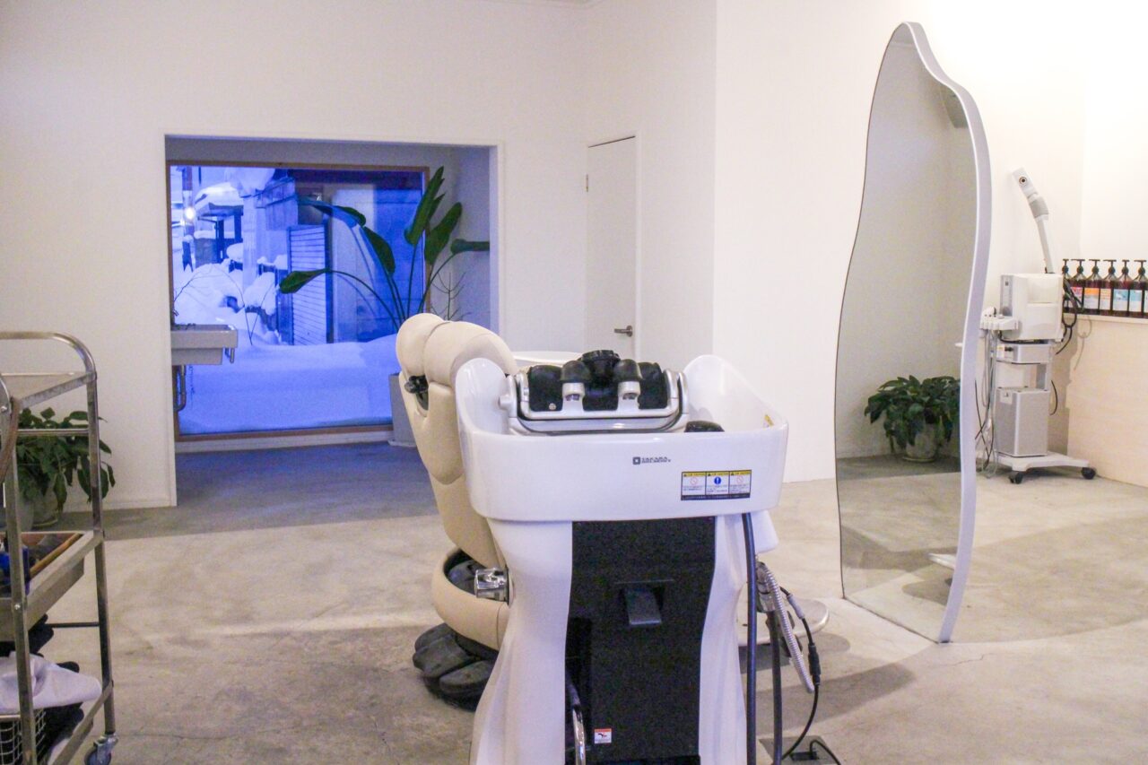 店内はシンプルながらもとてもおしゃれな空間となっています。特に等身大ミラーにはこだわりがあるそうですよ。お店のコンセプトが「自分を大切にする、自分だけのサロン」ということで、席は一席のみ。大きな窓から季節の風景を楽しみつつ、施術を受けながらゆっくり時間が過ぎていく、そんな優雅なときを楽しむことができるサロンです。