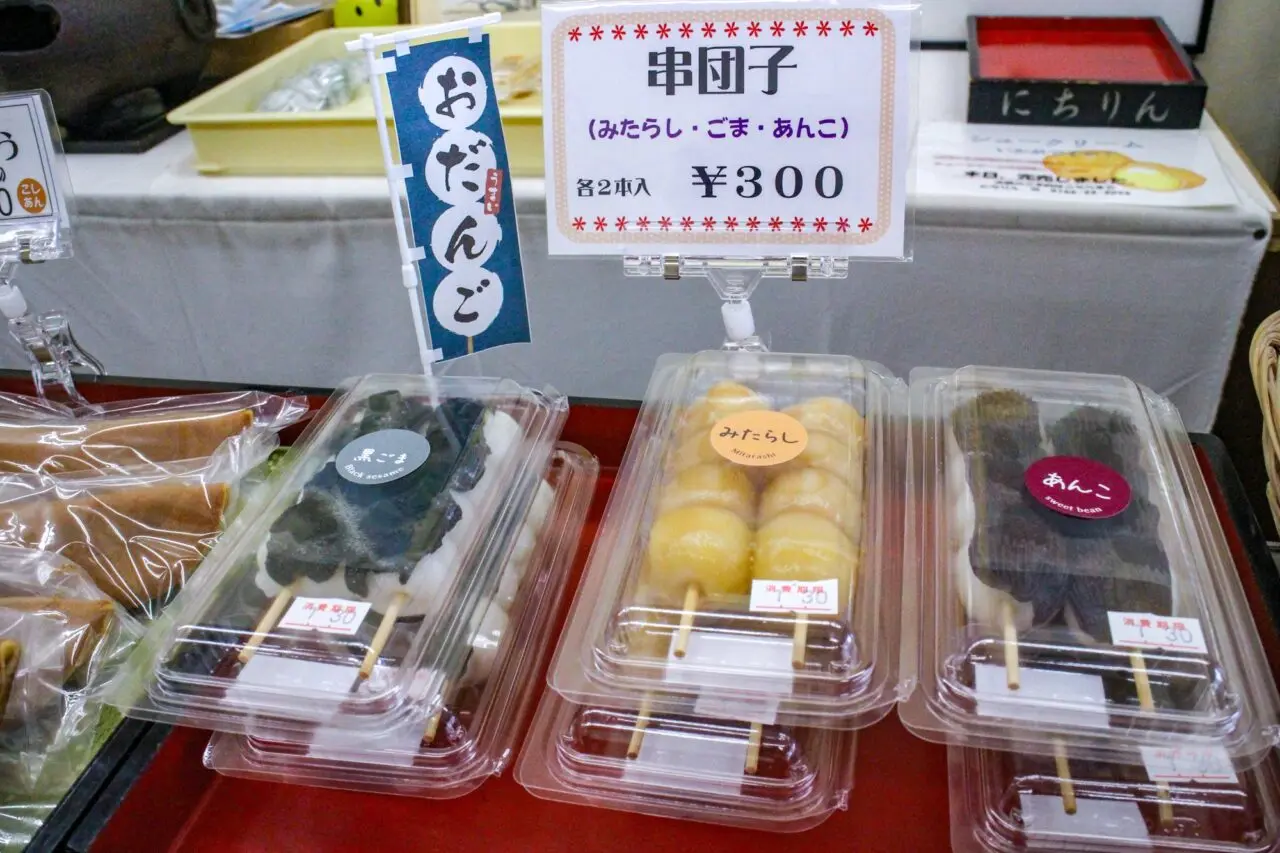 惜しまれつつ閉店した新富の「聖弘堂」の看板商品だった串団子も味を引き継いで販売しています。ふっくらとした生地の串団子は、みたらし・あんこ・ごまの3種類を提供しています。みたらしとごまは聖弘堂の店主さんより味を引き継ぎつつ、にちりん仕様となっています。「聖弘堂」の味が懐かしくなった人は、にちりんに買いにいってくださいね。