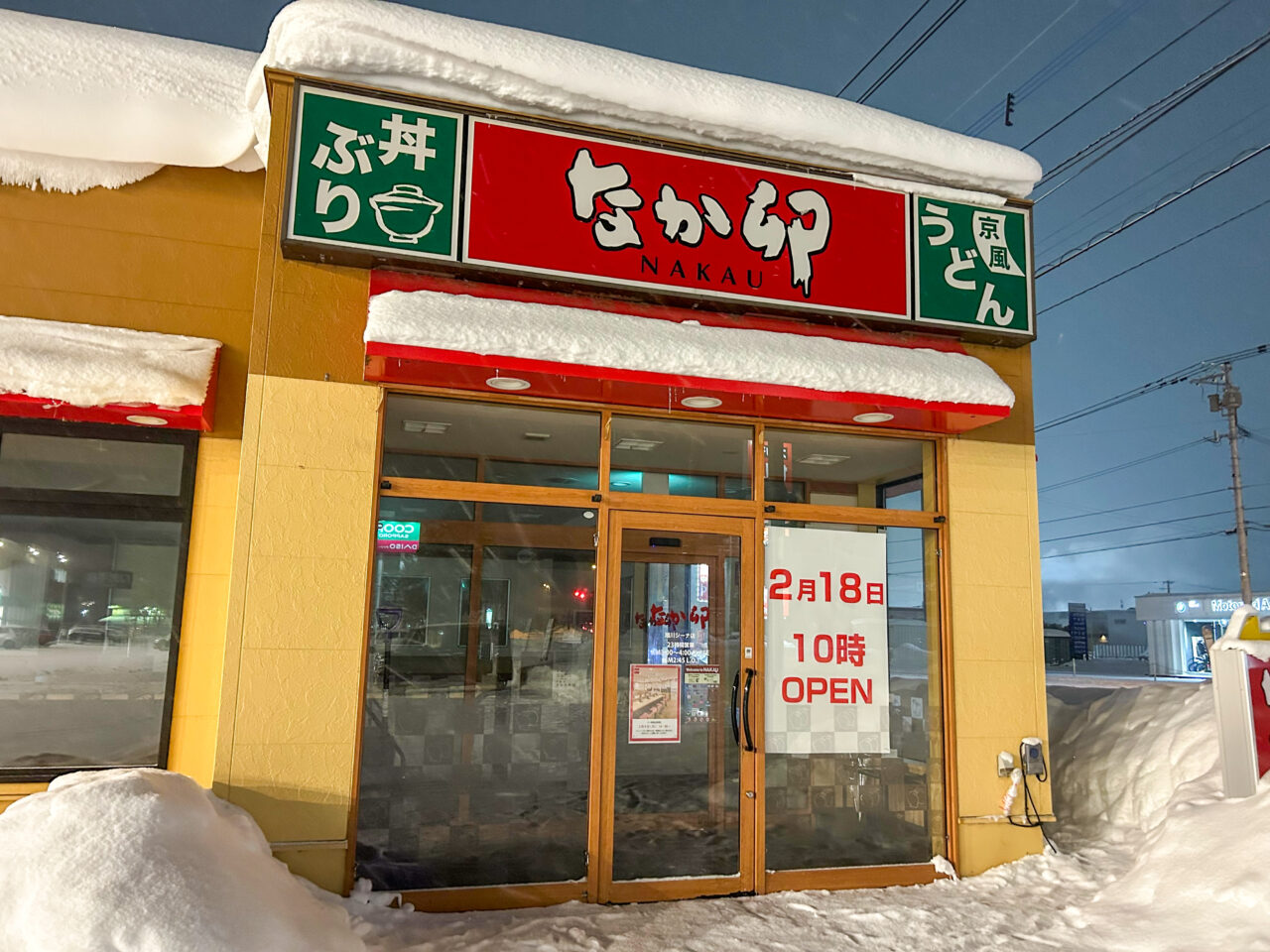 公式サイトを見ると、2026年2月9日14時から2月18日10時まで、改装工事のため一時閉店しているとのことです。営業開始は2月18日の10時となることが、店頭にも大きく記載されています。なか卯は旭川には「なか卯 旭川四条通店」もあるので、期間中になか卯のメニューを味わいたい人は、旭川四条通店をご利用くださいね。