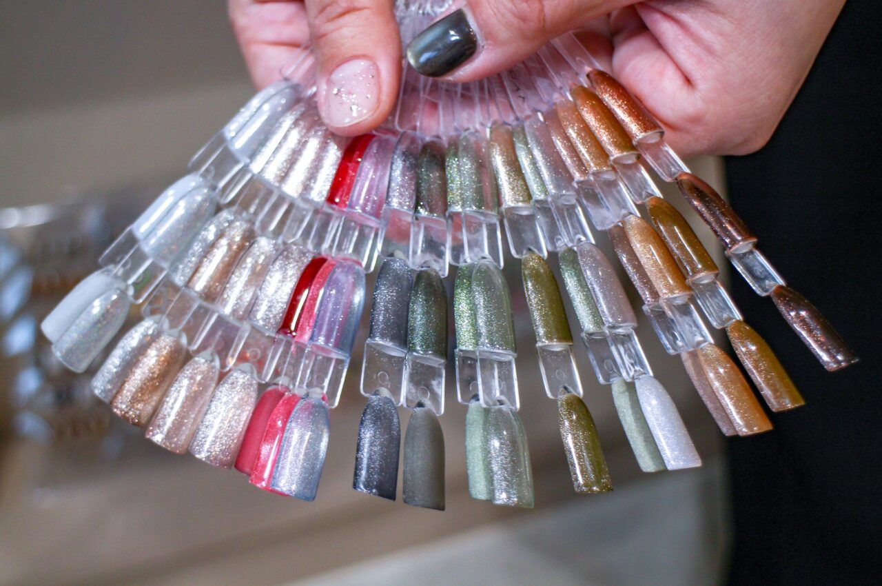 磁石で鉄粉を動かすことで、見る角度や光の当たり方によってネイルの輝きが変化しています。通常のネイルよりも奥行きのある、その人だけのデザインが生まれるという特徴もあります。
