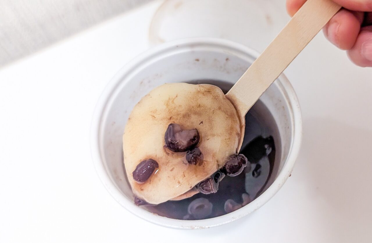 今回は「あんこ」特集として、手作りの「おしるこ」をご案内します。自家製のおしるこは、白玉団子が二個入っており、ボリュームも200ml以上ありたっぷり。このボリュームで200円(税込)とは驚きです。東鷹栖の住宅街に来て下さるみなさまに、温まっていってほしいという思いで、利益度外視で提供しているおしるこは、つぶあんで小豆の食感を味わえ、甘くとても優しい味がしました。白玉団子も大きくてモチモチしています。