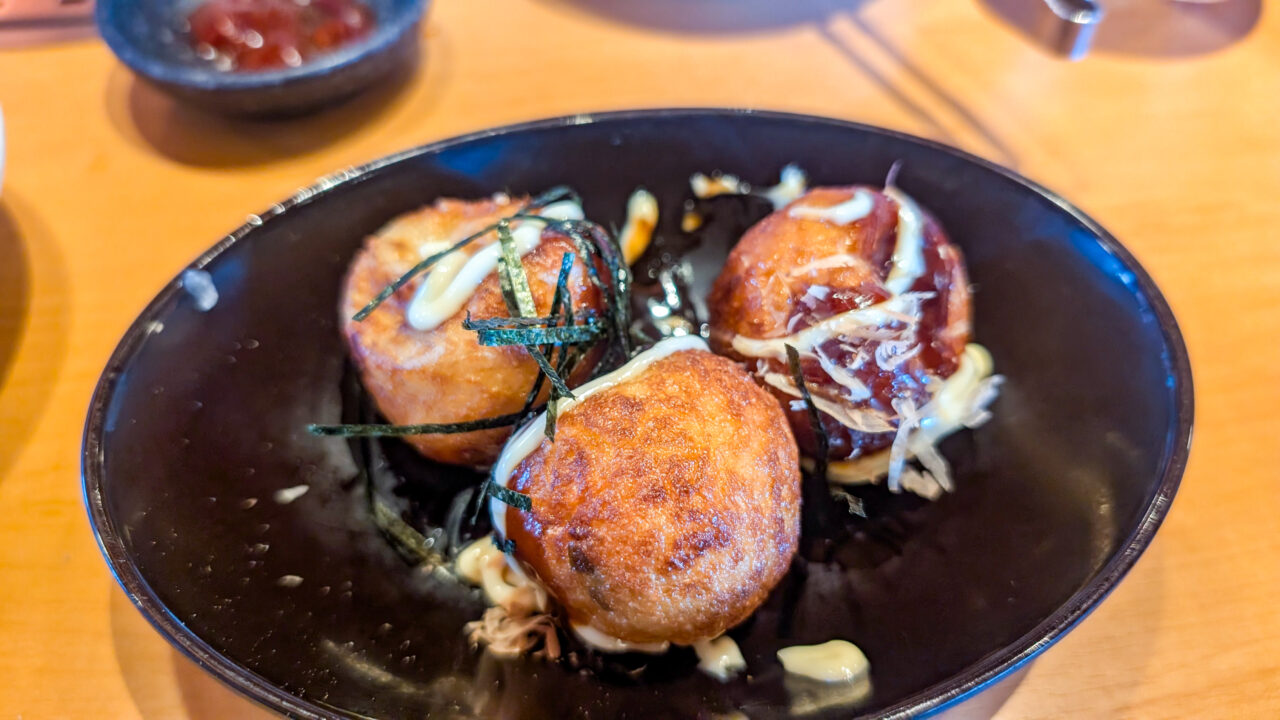 実は隠れた人気メニューとのことで、表面はカリッとしていて、中はとろとろ。熱々でぜひ食べてほしいです。食べ放題メニューの中にもあり、一皿3個で提供となるので、焼き肉の箸休めにたこ焼きを味わうのも良いかと思います。食べ放題を味わうときに、つい何度も食べてしまうメニューで、意外とたこ焼きと焼肉というのは相性が良いかもしれません。