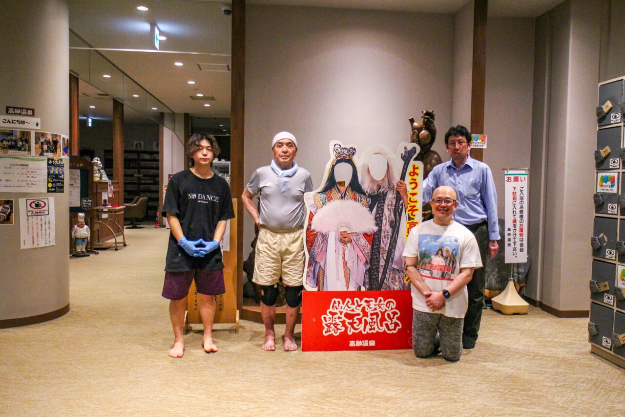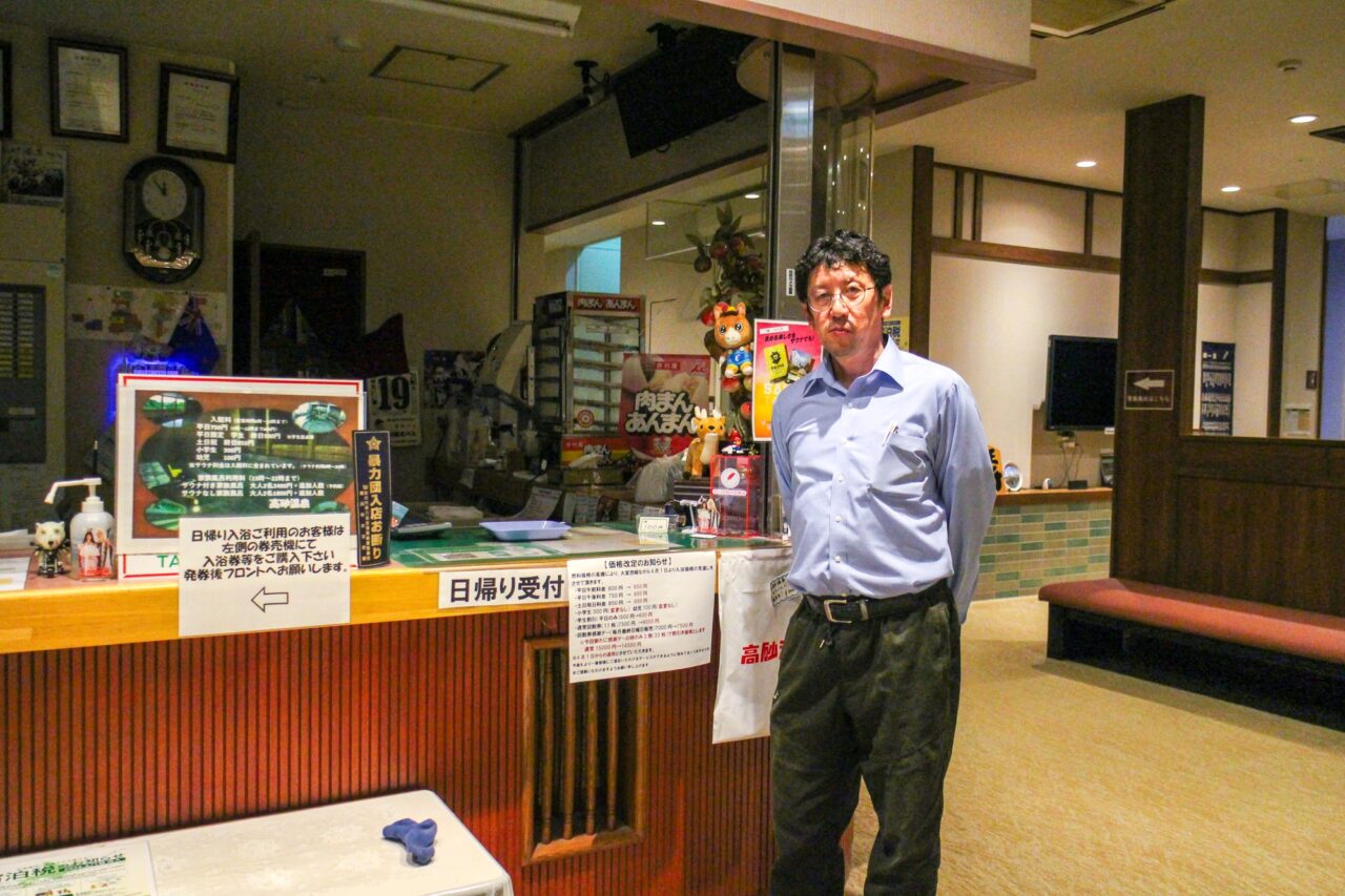 高砂温泉の3代目社長の高崎重幸さんにお話をうかがうと、かつては高砂台や観音台には多くの入浴施設があり、台場はホテル街だったそうです。「高砂まつり」もあり、すべての入浴施設を巡ることができるなど活気に満ちていたと懐かしそうに話していました。メディアに取り上げられ再び脚光を浴び、多くの人の来館に感謝の気持ちが強く、「今後も懐かしさと憩いを守り続けていきたい。」と話しておられました。
