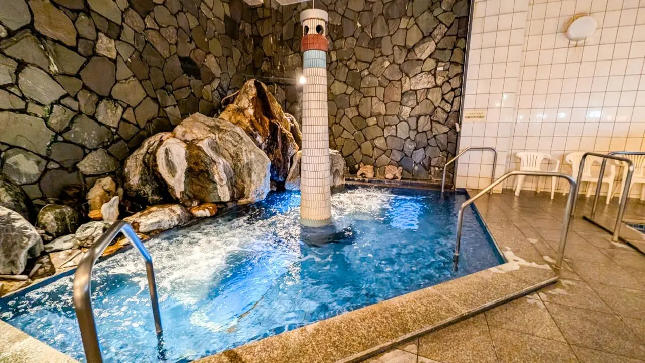 ゲルマニウム鉱石風呂は、発汗効果もあるそうです。気泡風呂や水風呂もありました。