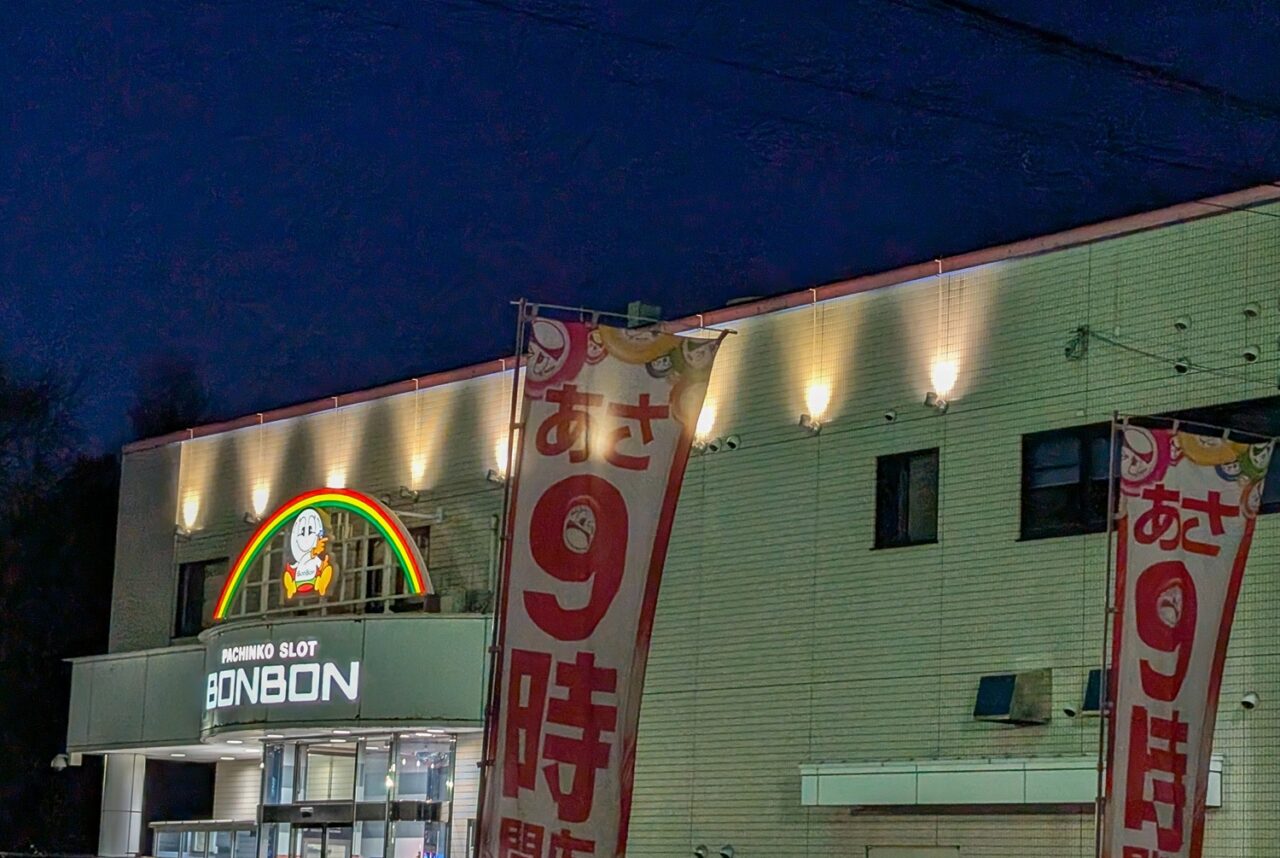 大町1条にある「パチンコボンボン大町店」の道路を挟んだ右側で、いつの間にか新たな工事が始まっており、白い建物が出現しているのを2026年4月27日に確認しました。