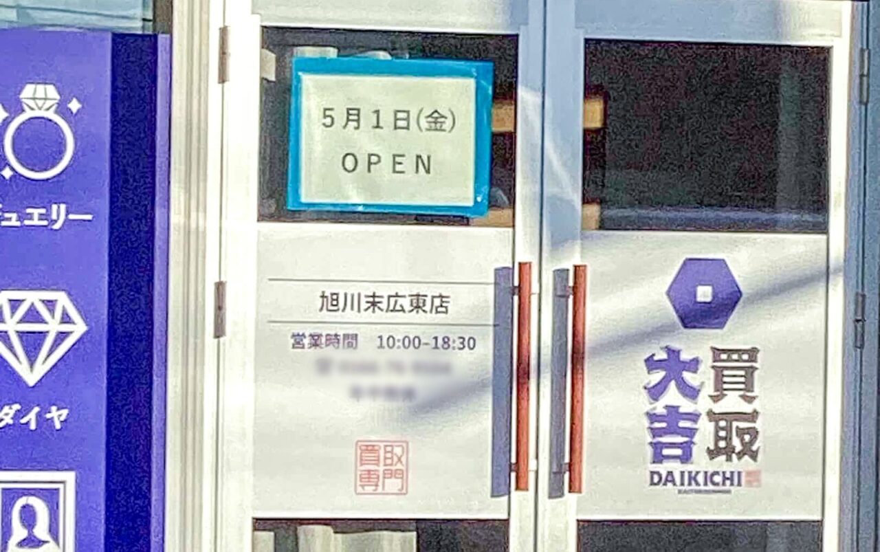 【旭川市】末広東1条の国道40号線沿いに「買取大吉 旭川末広東店」が2026年5月1日にグランドオープンします!
